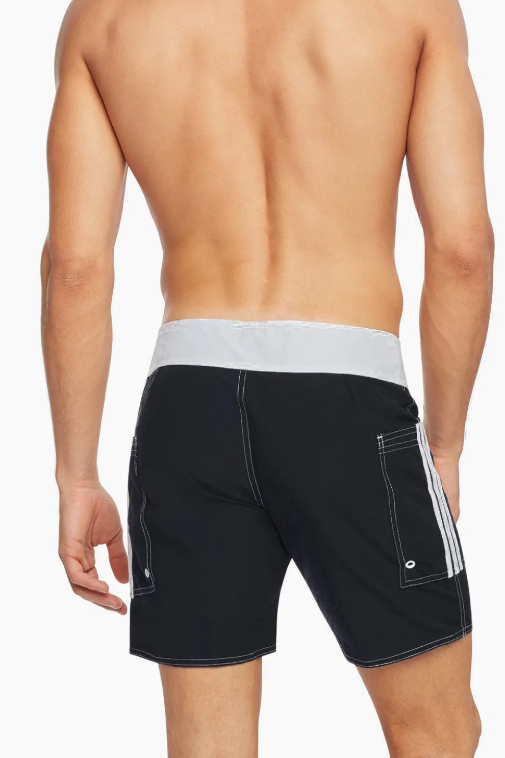 Midlength classic banded surf short. Modern colors update our perfect fitting classic boardie. Two side pockets for style and storage with stripe details. Surf styled lace-up front.