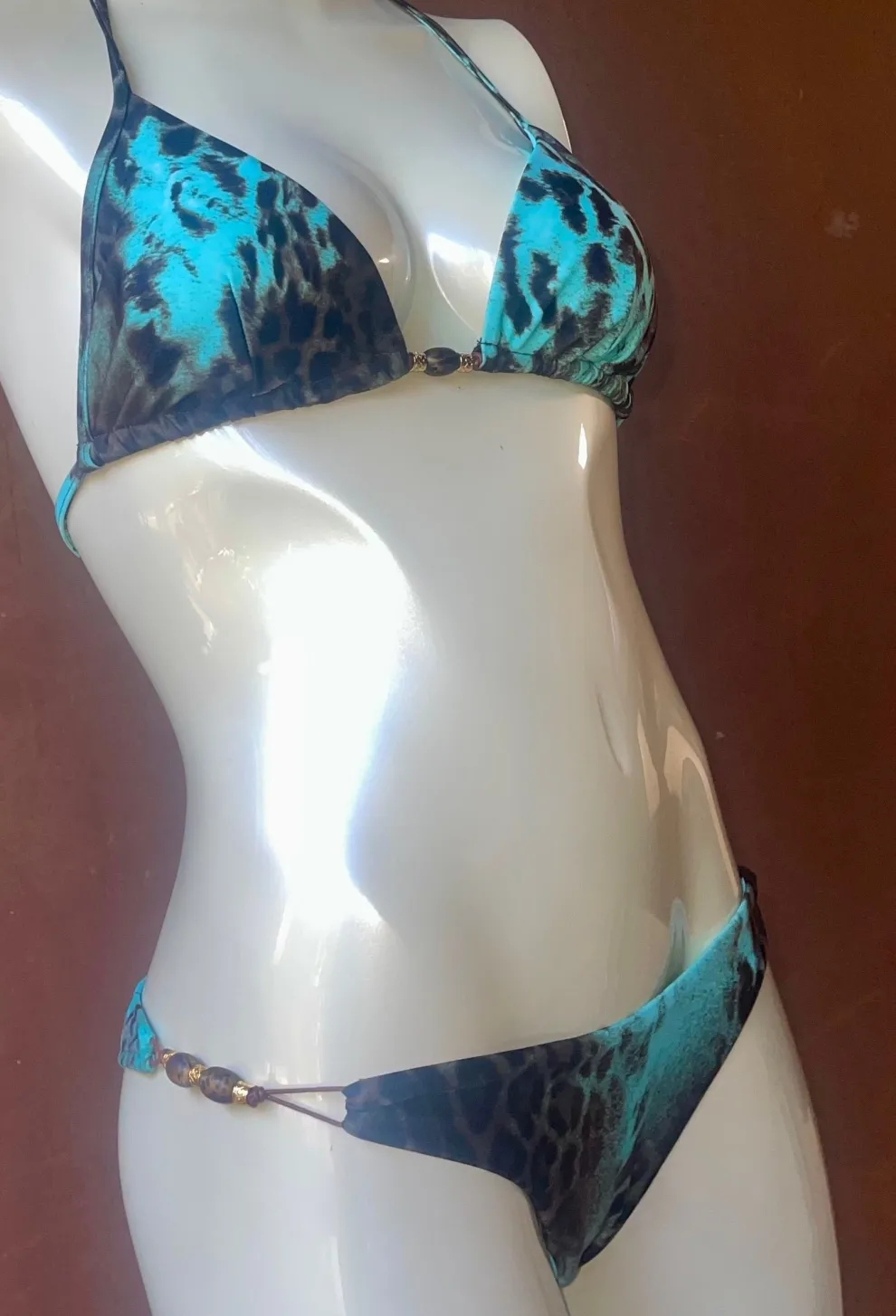 Triangle top with bead center. Scoop Bottom with beaded side trim.