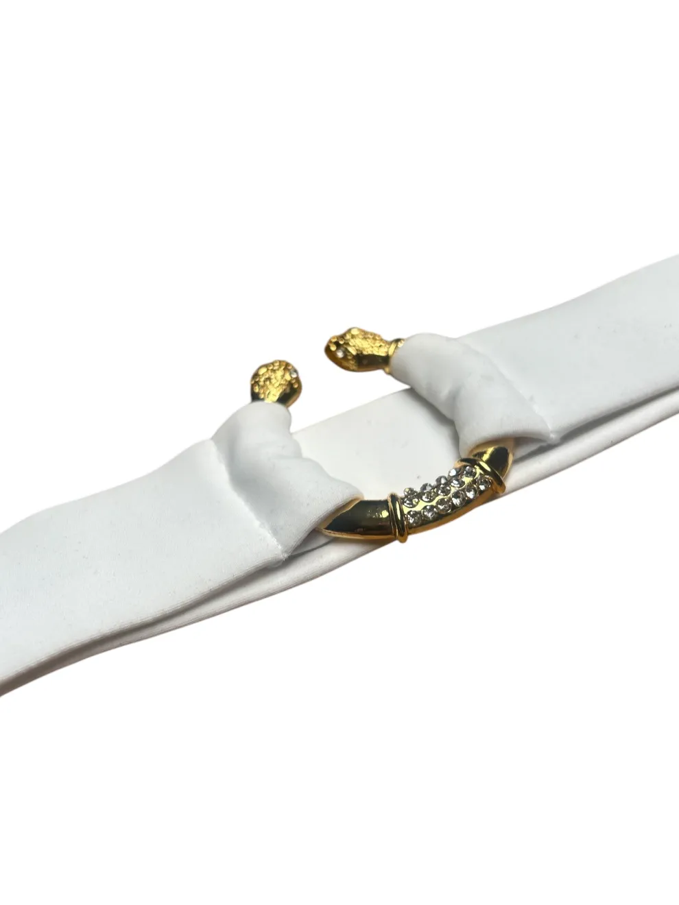 Dress comes with a lycra belt, featuring a gold crystal snake clasp.
